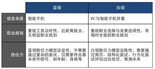那白領(lǐng)和藍(lán)領(lǐng)群體的招聘有哪些不同呢?我認(rèn)為主要有以下三個(gè)方面:
